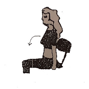 Hay que sentarse en una silla, apoyandose contra el respaldo de la misma en forma recta (tal como lo muestra la figura) e inclinar el tronco hacia las piernas unas 10 veces.